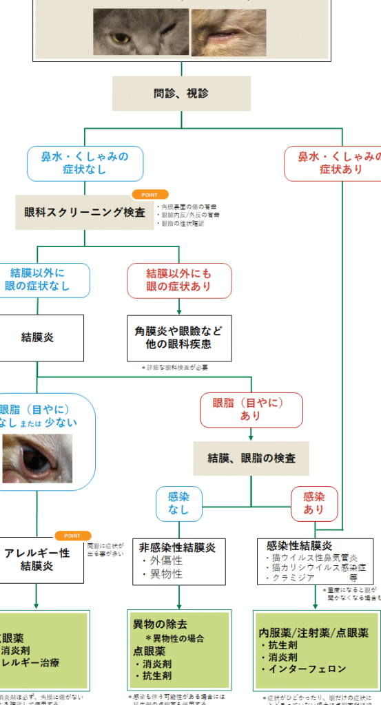 治療法としては、原因に応じて抗生物質や抗ウイルス薬、目薬の投与が行われます。また、ストレスを軽減するために環境の改善も重要です。
