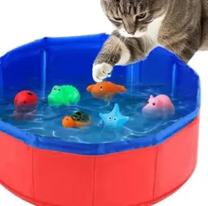また、プールにおもちゃを入れると、猫が追いかけや捕まえを楽しむことができます。